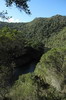 Nous remontons le cours de la rivière et pénétrons dans la forêt. Nous trouvons plusieurs Touraco louri (Tauraco corythaix) bien cachés dans le feuillage, malgré leur grande taille. Ils sont magnifiques, notamment lorsqu'il dévoilent le rouge de leurs ailes en vol. Deux Pygargue vocifer (Haliaeetus vocifer) et une Buse forestière (Buteo trizonatus) nous survolent. Dans la forêt, je trouve un Cossyphe choriste (Cossypha dichroa), un Apalis à collier (Apalis thoracica) et un Pririt du Cap (Batis capensis). Enfin, tout en haut des falaises, nous distinguons un daman des rochers.